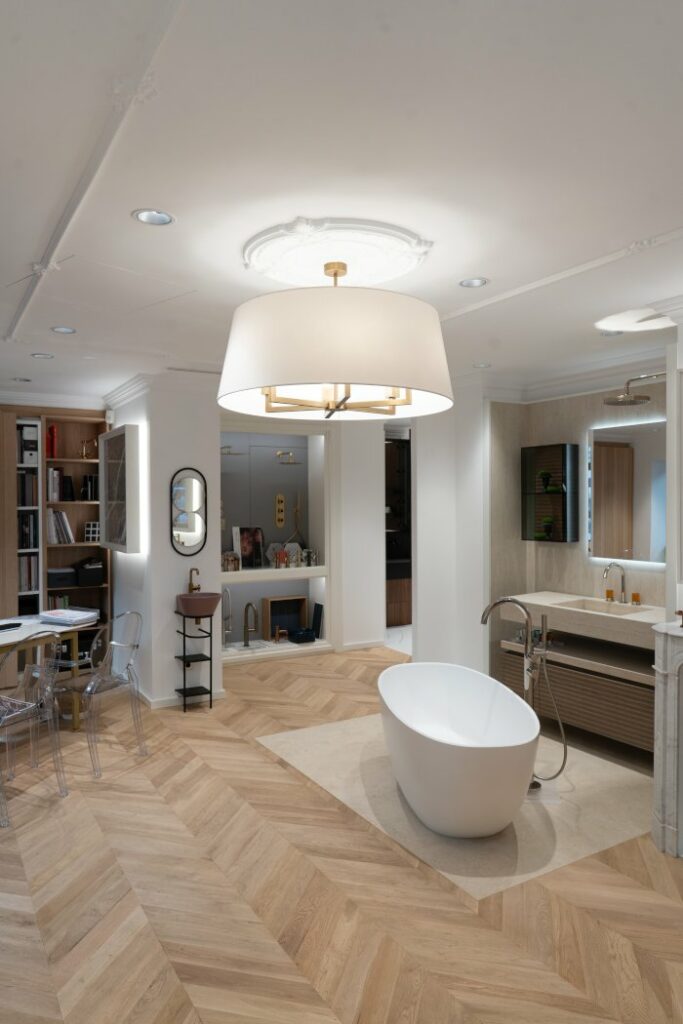 R&V – MAÎTRE BANISTE – PARIS Des formes et des couleurs.Le showroom de sanitaires haut de gamme R&V, maître bainiste, a opté pour la suspension SPY 80 de la marque QUASAR dans sa finition nickel pour éclairer sa matériauthèque. Légèreté, transparence, élégance… De quoi mettre en valeur les matériaux exposés et destinés à sa clientèle. […]